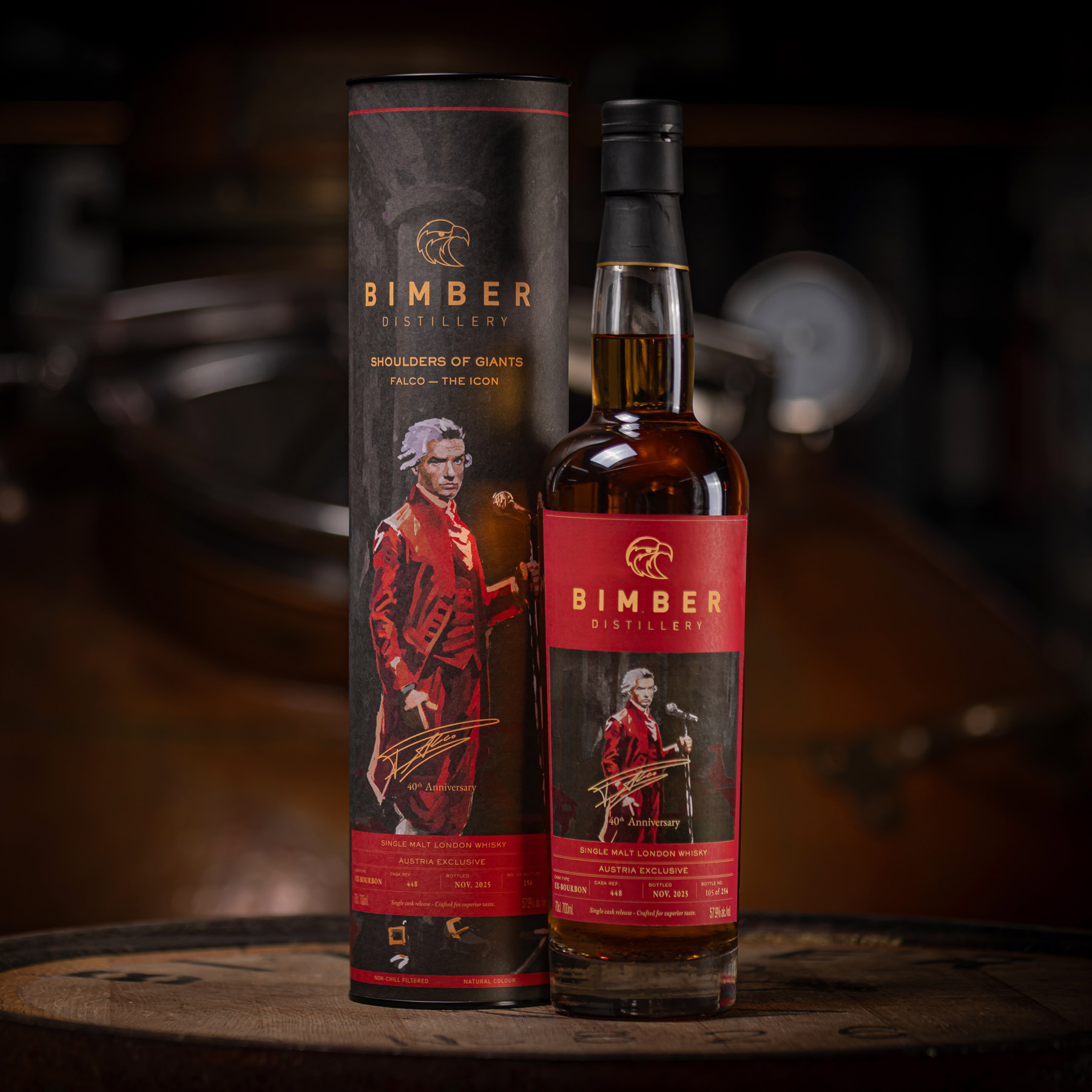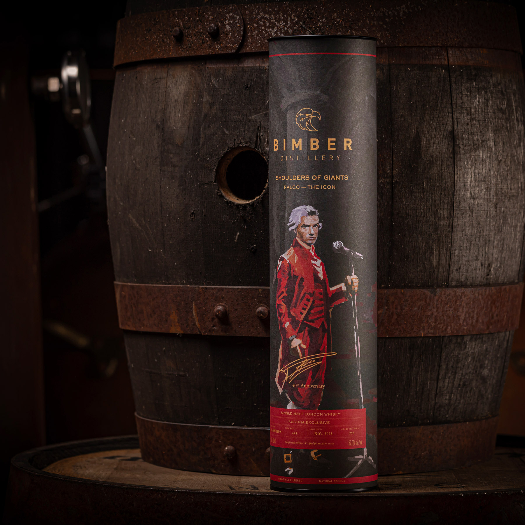 Created as part of Bimber’s Shoulders of Giants series, this release honors Falco, the only German-speaking artist to ever top the US Billboard charts. In collaboration with Salud Spirits and the Falco Private Foundation, this edition brings together music, culture, and craftsmanship. Distilled in London and matured in a carefully selected ex-bourbon cask, the whisky reveals a layered and vibrant character. With only 241 bottles available for the Austrian market, each bottle represents a rare intersection of heritage and artistry.